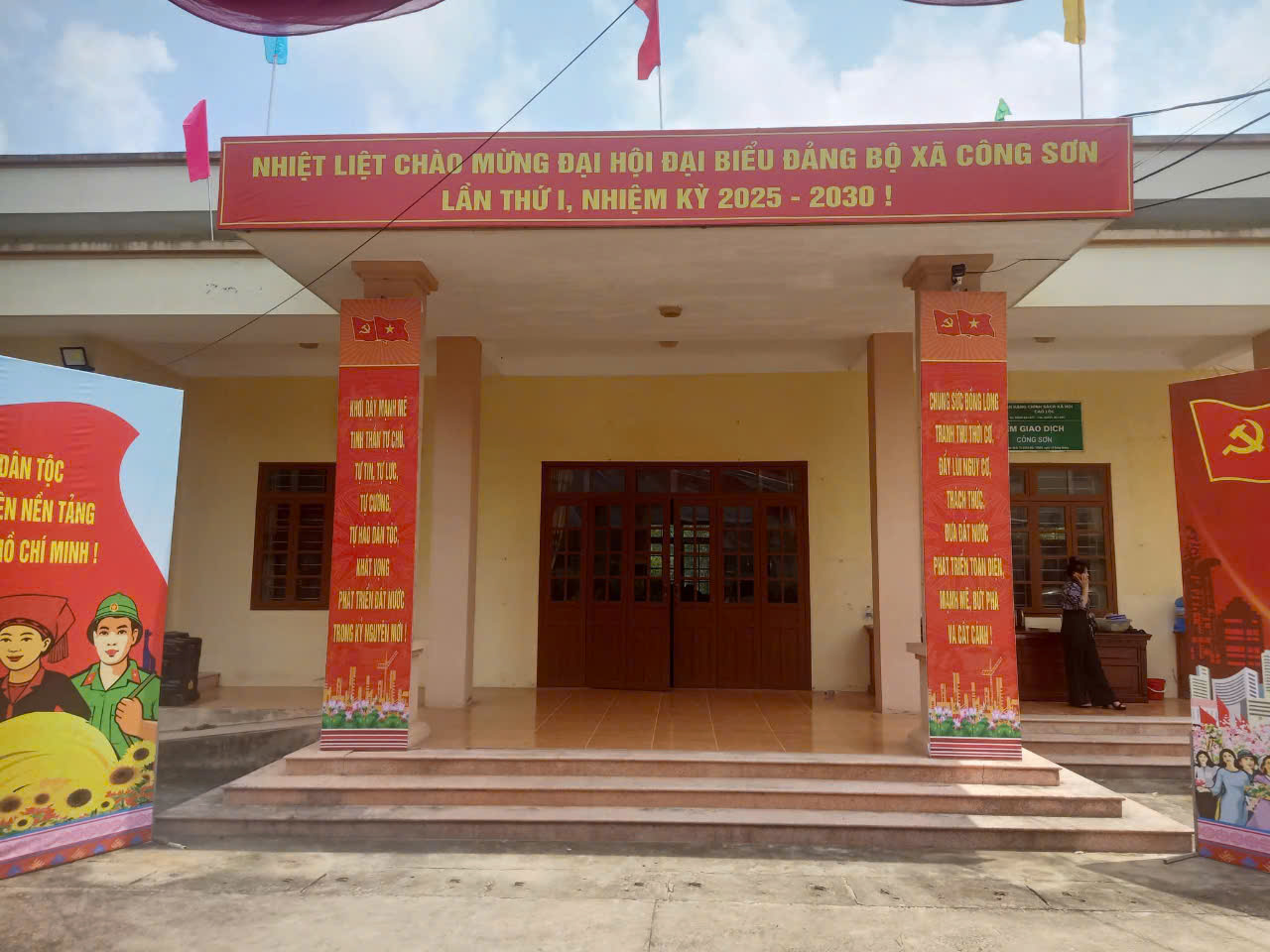 Một số hình ảnh trang trí khánh tiết và tuyên truyền lưu động chào mừng Đại hội Đại biểu Đảng bộ xã Công Sơn lần thứ I, nhiệm kỳ 2025 – 2030