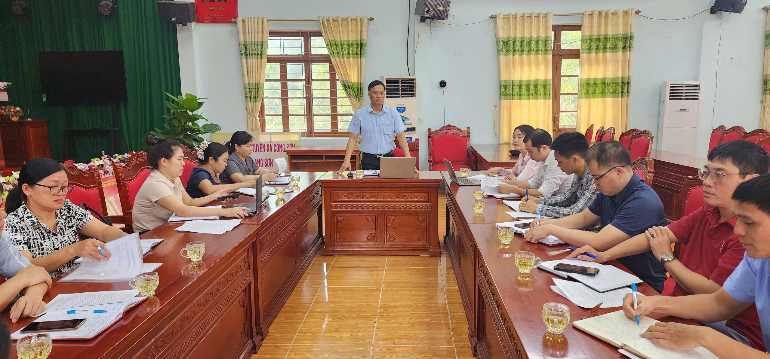 Thực hiện Thông báo số 01-TB/ĐU ngày 28/7/2025 của Ban Thường vụ Đảng ủy xã Công Sơn về Chương trình làm việc của Thường trực Đảng ủy với các Chi bộ thôn và một số phòng ban thuộc UBND xã năm 2025. Ngày 05 tháng 8 năm 2025 đoàn công tác số 1 của Thường trực Đảng ủy do đồng chí Đàm Vân Hải, Bí thư Đảng uỷ, chủ tịch Hội đồng nhân dân xã làm việc Phòng Kinh tế, Phòng Văn hoá xã hội xã sau 01 tháng tirển khai thực hiện mô hình chính quyền địa phương 2 cấp. Đi cùng đoàn công tác có đai diện lãnh đạo Ban Xây dựng Đảng, Ủy ban Kiểm tra Đảng, Văn phòng Đảng ủy xã.