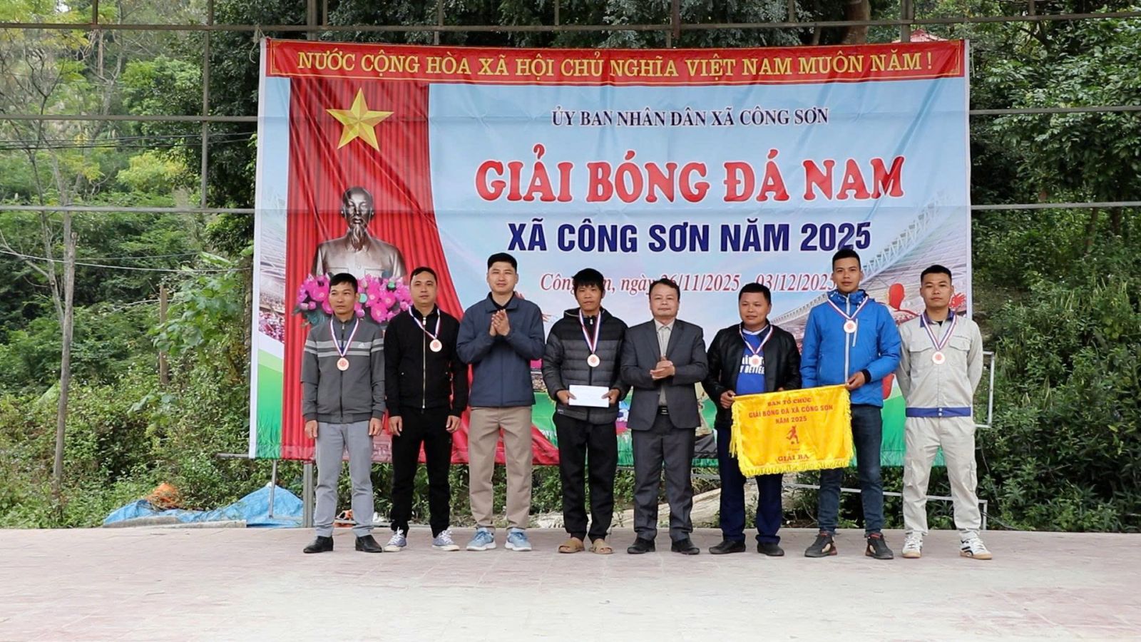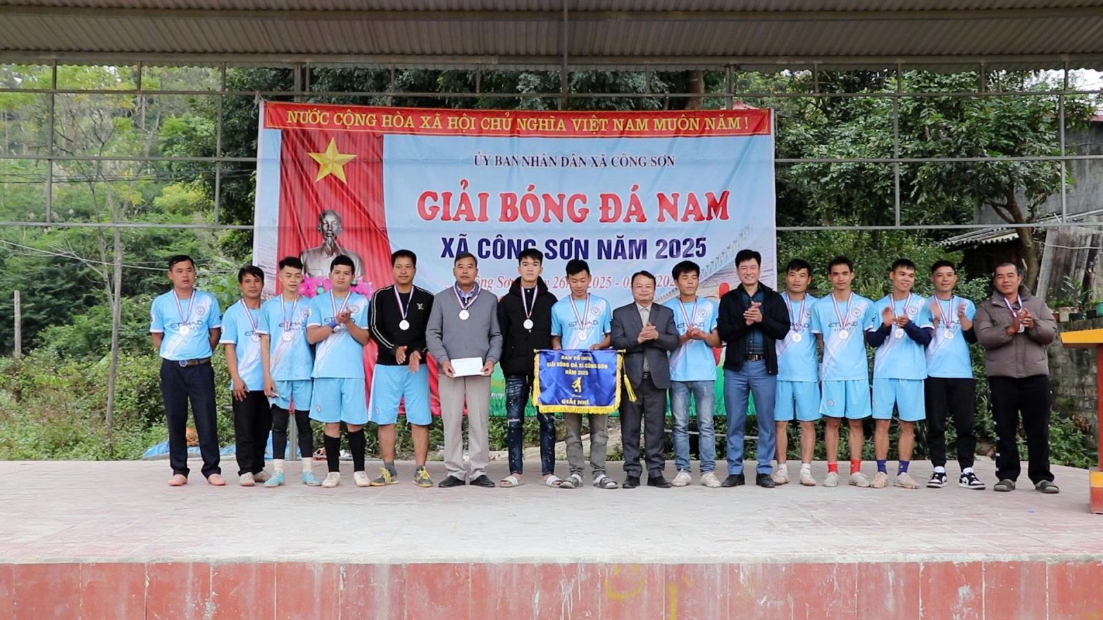 Kết thúc giải đấu, đội bóng thôn Chè Lân xuất sắc trở thành đội vô địch và vinh dự nhận Cúp Bóng đá nam xã Công Sơn năm 2025; Giải Nhì thuộc về đội thôn Kéo Cặp, đồng Giải Ba được trao cho đội thôn Tằm Riền và khối Cơ Quan. Ban Tổ chức cũng trao 02 giải chuyên cho: Cầu thủ ghi nhiều bàn thắng nhất (Cầu thủ Lộc Văn Ngan thôn Kéo Cặp), Thủ môn xuất sắc (Trần Văn Hảo thôn Chè Lân).