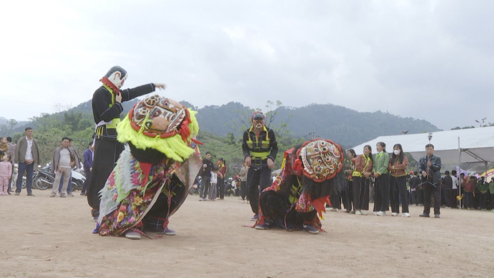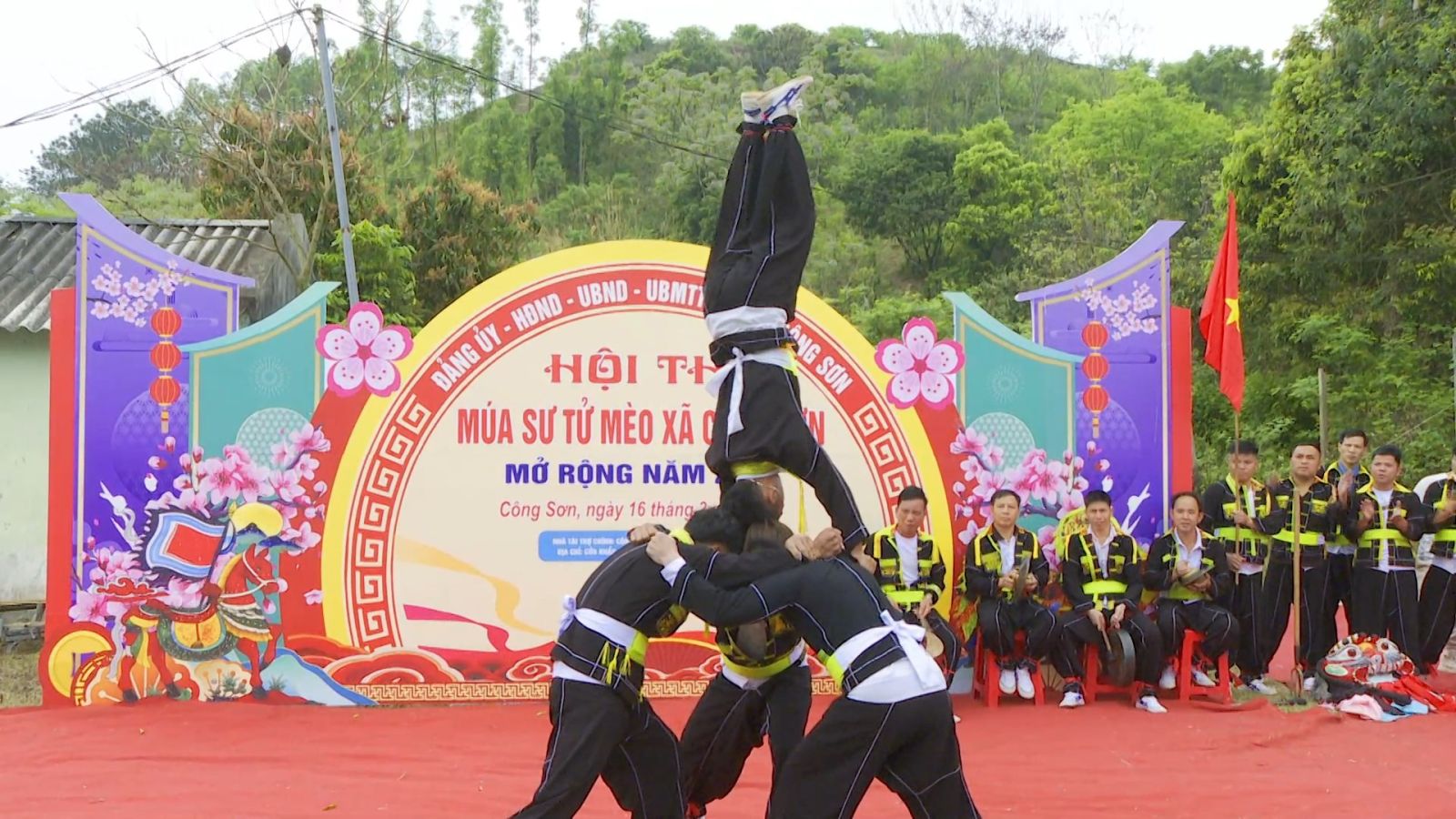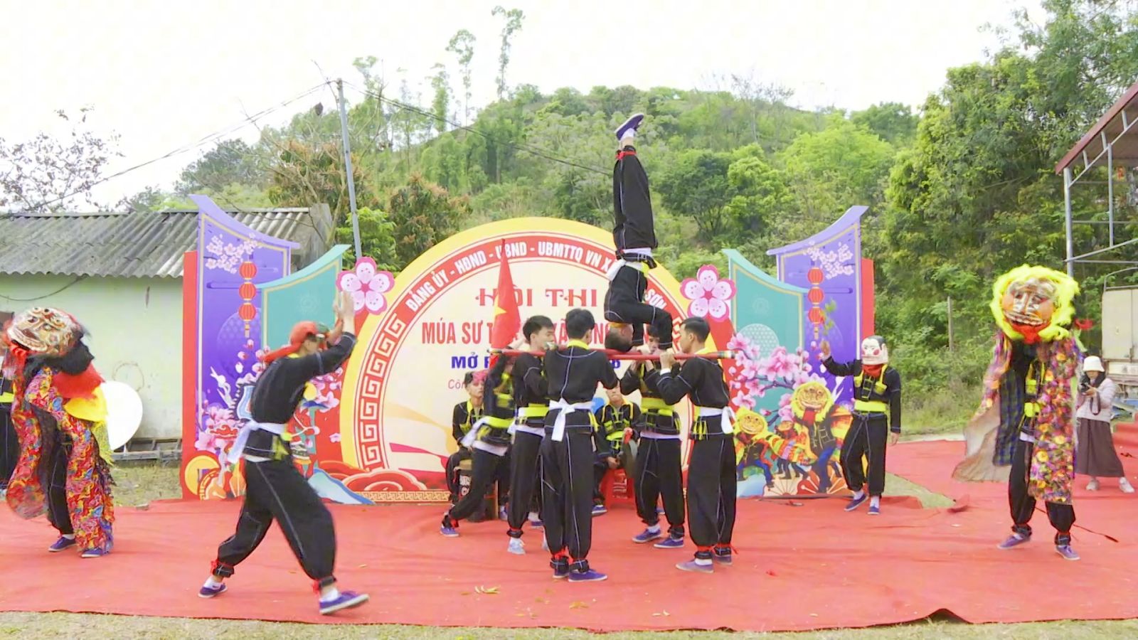 Điểm nhấn nổi bật của ngày hội năm nay là hội thi múa sư tử mèo – một nét văn hóa truyền thống đặc trưng của địa phương. Các đội thi đến từ nhiều thôn, bản đã mang đến những màn biểu diễn công phu, thể hiện sự khéo léo, dẻo dai và tinh thần đồng đội. Từng động tác nhảy, lắc, leo, chồm của “sư tử mèo” đều được thể hiện linh hoạt, mạnh mẽ trên nền nhạc trống hội dồn dập, tạo nên không khí sôi động, cuốn hút người xem. Không chỉ mang tính giải trí, múa sư tử mèo còn chứa đựng ý nghĩa tâm linh, cầu mong một năm mới bình an, mùa màng bội thu, cuộc sống ấm no.