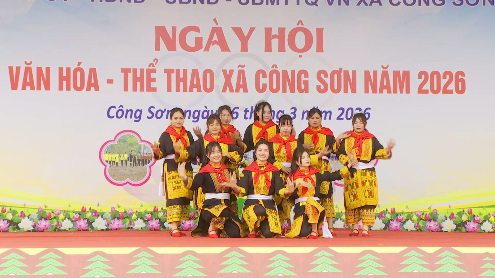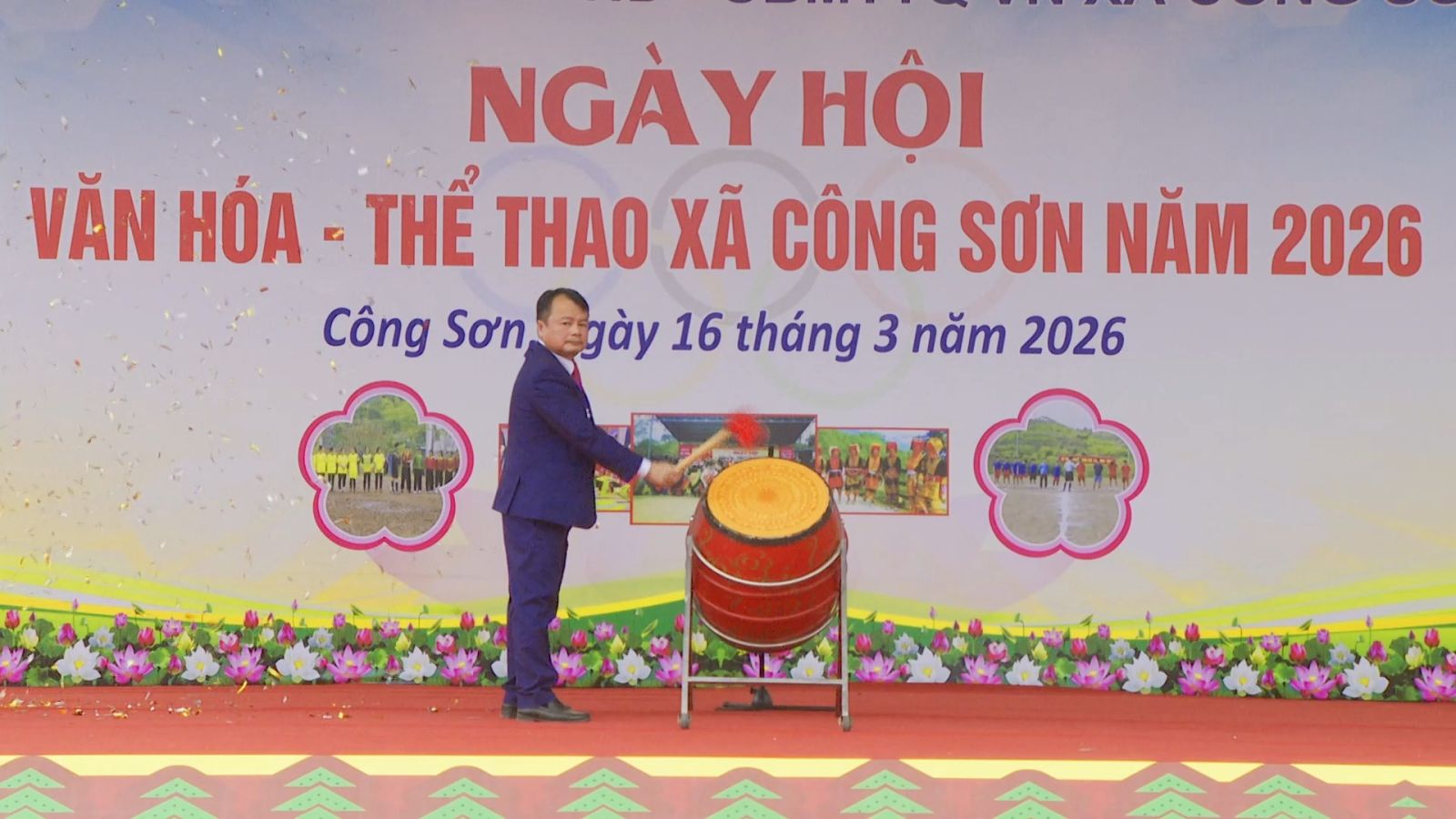Trong không khí rộn ràng của những ngày đầu xuân, sáng ngày 16/3 (Tức ngày 28 tháng Giêng năm Bính Ngọ), tại sân thể thao xã Công Sơn, Ngày hội Văn hóa – Thể thao năm 2026 đã chính thức khai mạc, thu hút đông đảo cán bộ, Nhân dân và du khách gần xa tham dự. Từ sáng sớm, khi sương còn bảng lảng trên những triền núi, từng dòng người đã nô nức đổ về khu vực trung tâm, mang theo niềm háo hức, phấn khởi chờ đợi một ngày hội giàu bản sắc và đậm tình cộng đồng.