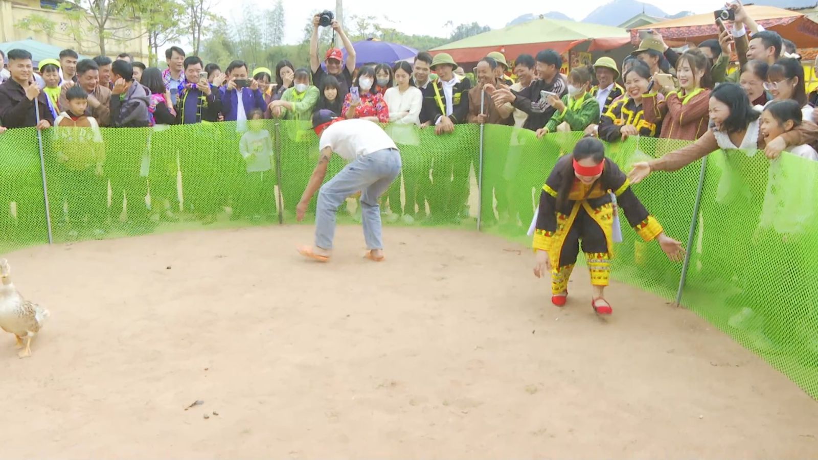 Bên cạnh đó, các trò chơi dân gian như bịt mắt bắt vịt, lảy cỏ, đẩy gậy,… cũng thu hút đông đảo Nhân dân và du khách tham gia. Mỗi trò chơi là một sắc thái riêng, nhưng đều chung một tinh thần vui tươi, đoàn kết. Tiếng hò reo cổ vũ, tiếng cười giòn giã vang lên khắp sân, xóa nhòa mọi khoảng cách, gắn kết mọi người lại gần nhau hơn. Những trò chơi tưởng chừng giản dị ấy lại chính là nơi lưu giữ những giá trị văn hóa truyền thống quý báu, phản ánh đời sống sinh hoạt, lao động của người dân qua nhiều thế hệ.