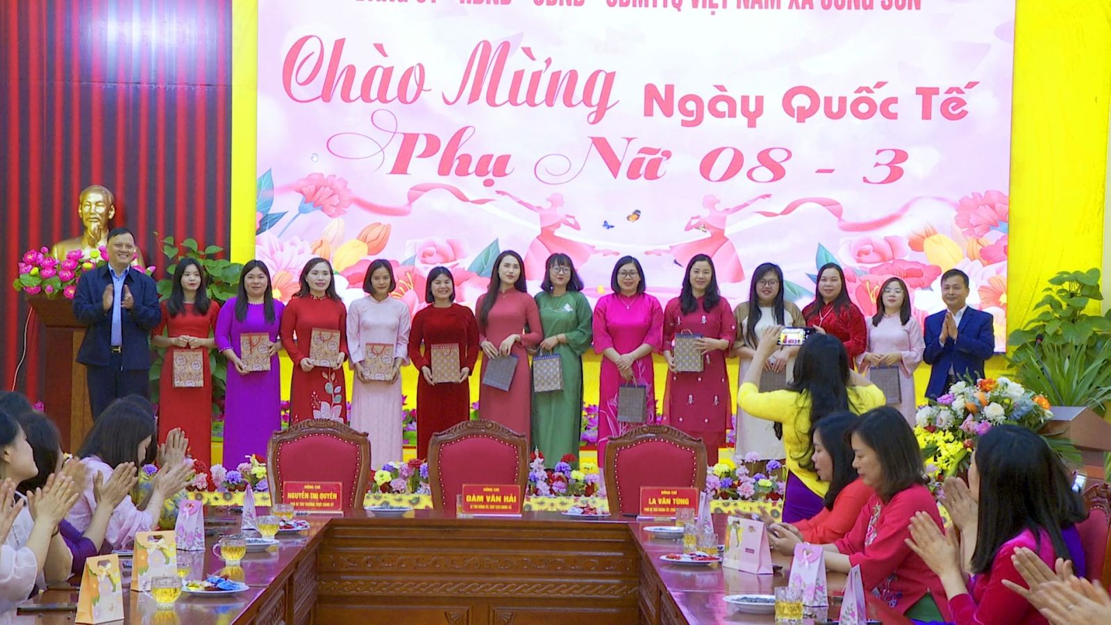 Nhân dịp này, lãnh đạo xã đã trao những phần quà ý nghĩa tới các chị em đang công tác tại Đảng uỷ, HĐND, UBND và Ủy ban MTTQ xã. Những phần quà tuy giá trị không lớn nhưng thể hiện sự quan tâm, động viên kịp thời của cấp ủy, chính quyền địa phương đối với đội ngũ cán bộ nữ.