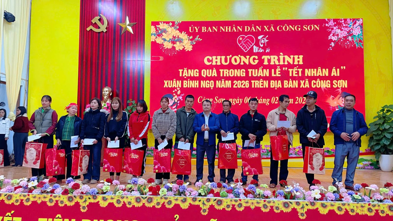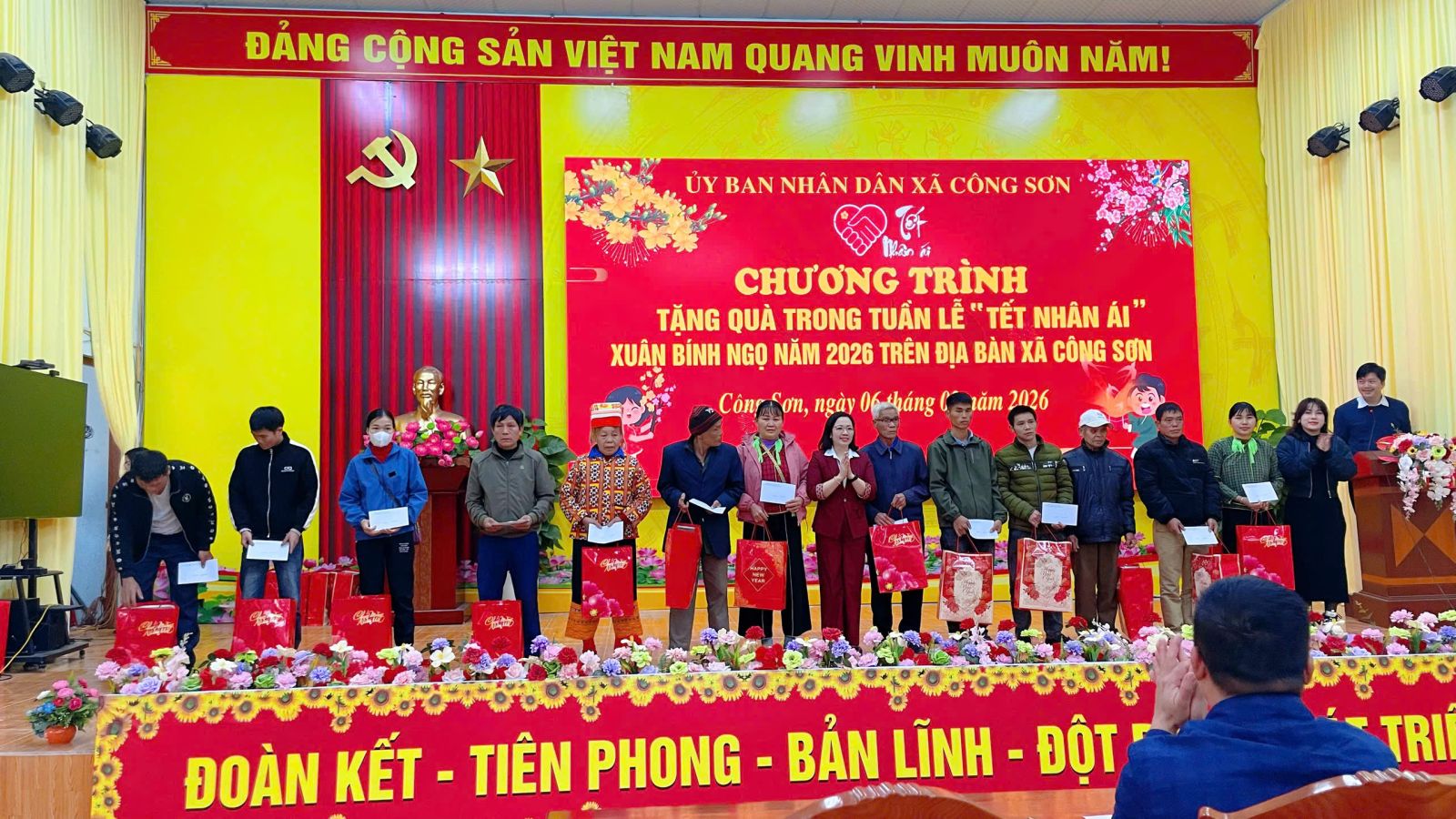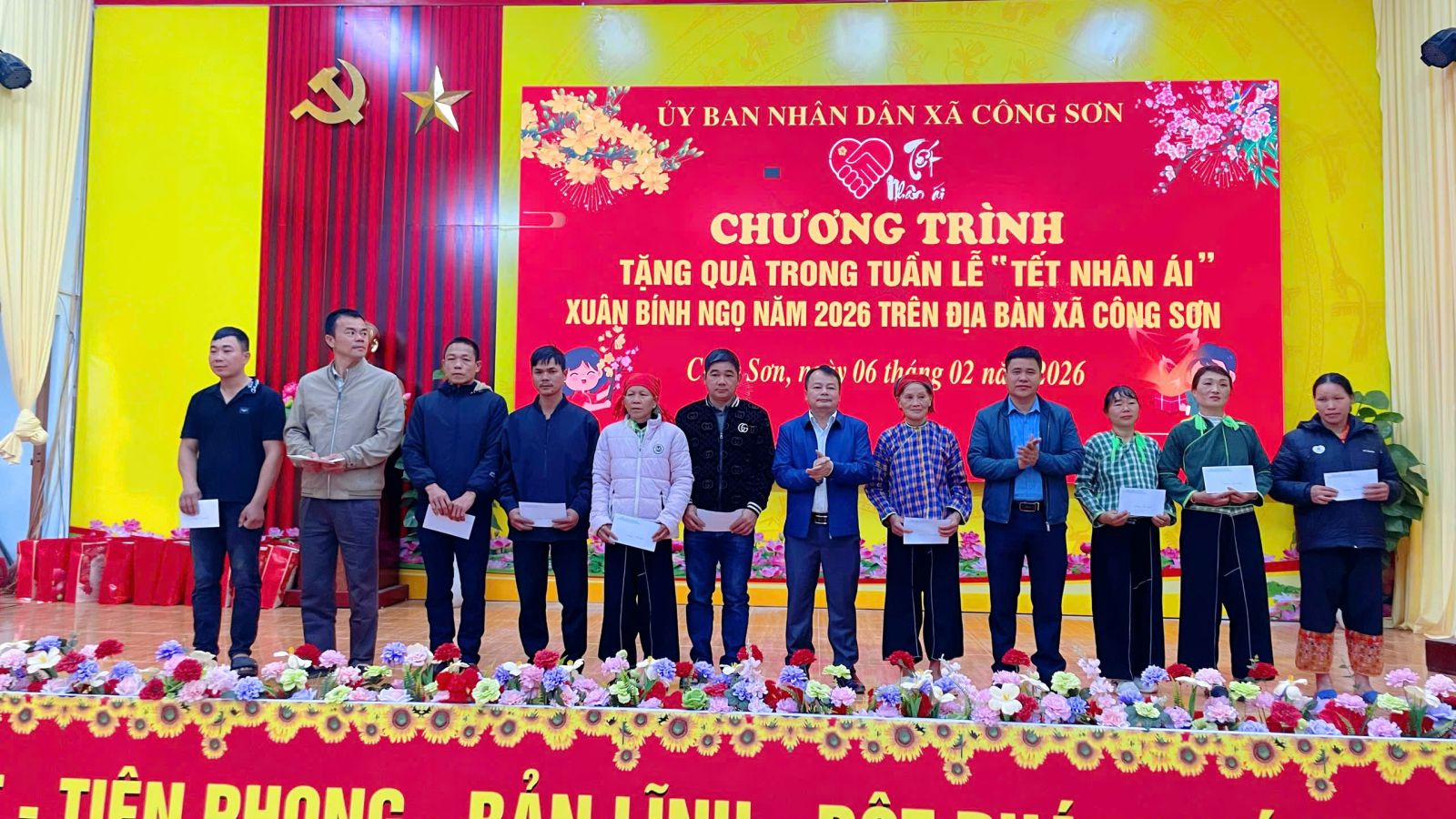 Ngày 06/02/2026, tại Nhà văn hóa xã, UBND xã Công Sơn tổ chức trao quà cho các đối tượng thụ hưởng trong Tuần lễ “Tết Nhân ái” Xuân Bính Ngọ năm 2026, thể hiện sự quan tâm chăm lo đời sống Nhân dân dịp Tết cổ truyền.