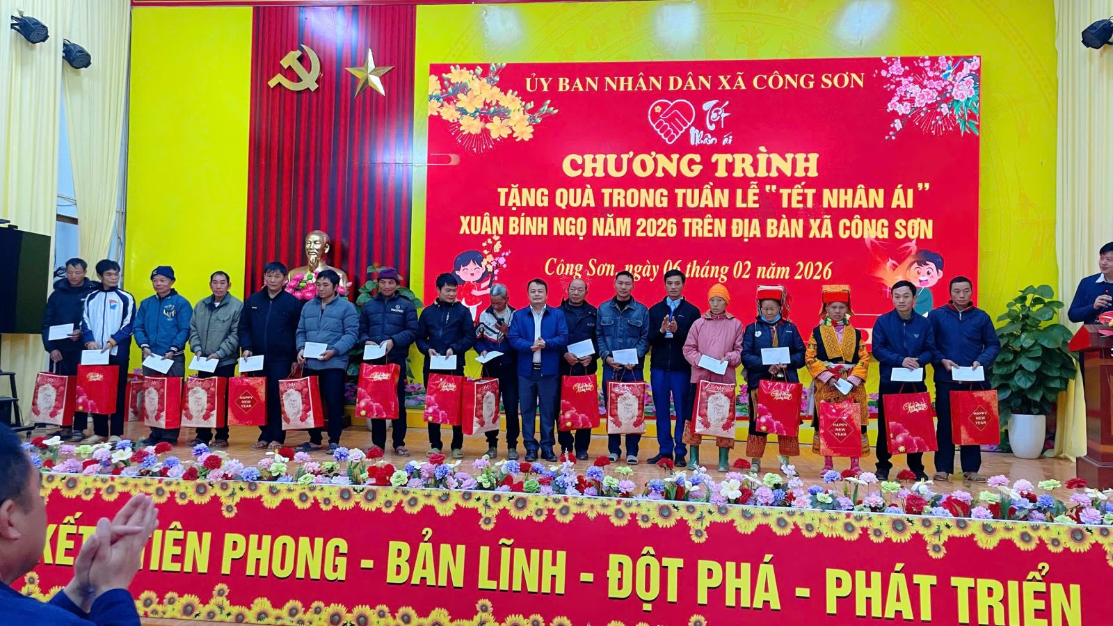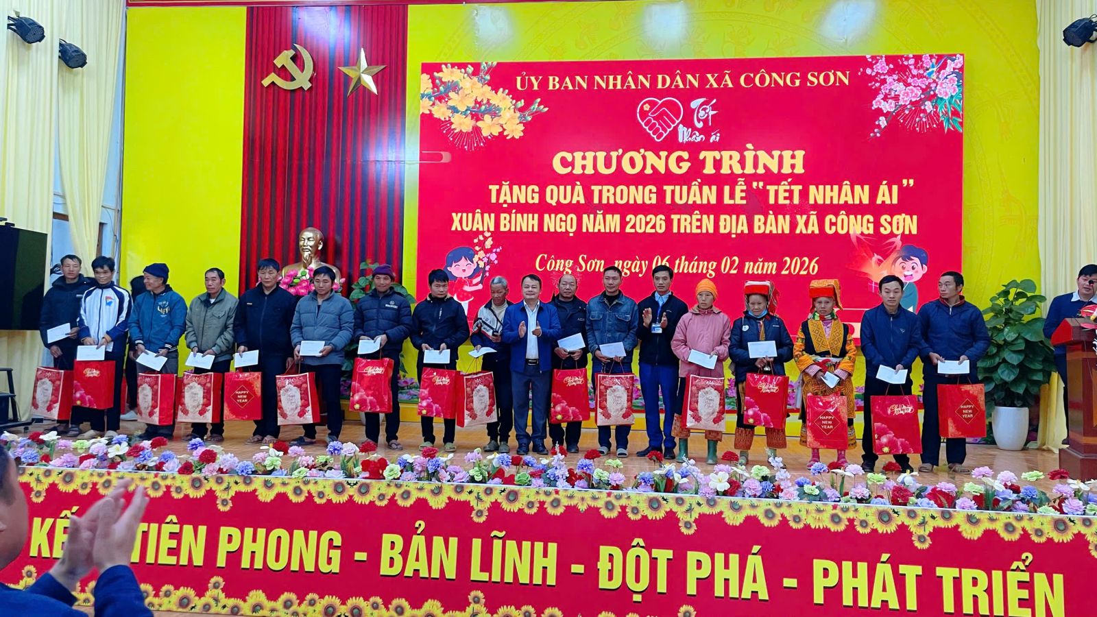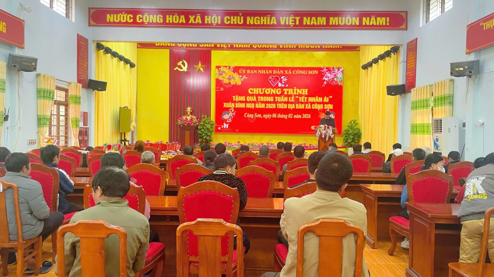 Ngày 06/02/2026, tại Nhà văn hóa xã, UBND xã Công Sơn tổ chức trao quà cho các đối tượng thụ hưởng trong Tuần lễ “Tết Nhân ái” Xuân Bính Ngọ năm 2026, thể hiện sự quan tâm chăm lo đời sống Nhân dân dịp Tết cổ truyền.