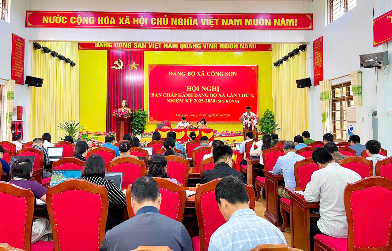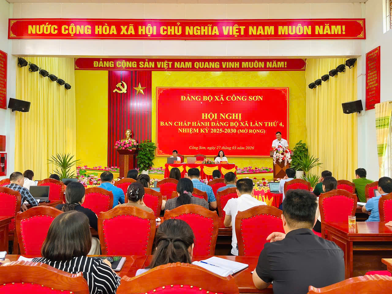 Sáng ngày 27/3/2026, Đảng ủy xã Công Sơn tổ chức Hội nghị Ban Chấp hành Đảng bộ xã lần thứ 4 (mở rộng), nhiệm kỳ 2025 - 2030 nhằm đánh giá kết quả thực hiện nhiệm vụ công tác quý I và triển khai phương hướng, nhiệm vụ trọng tâm quý II năm 2026.