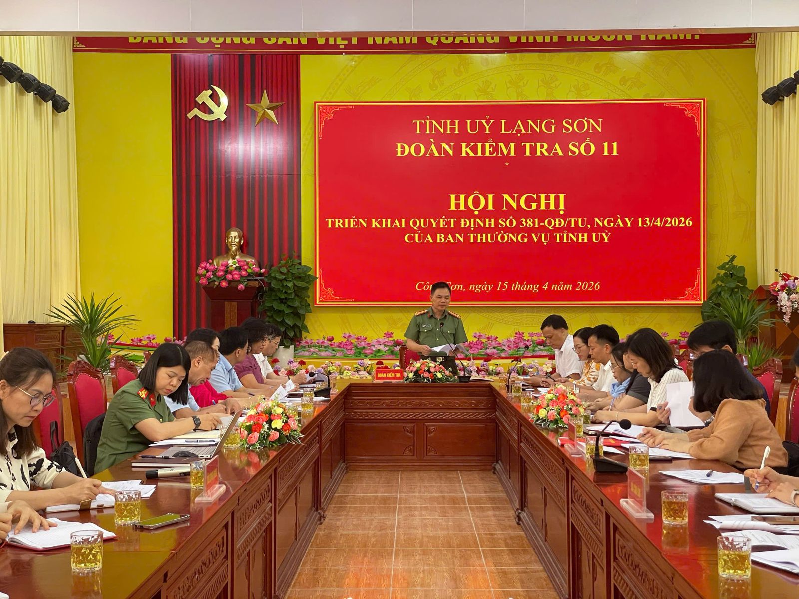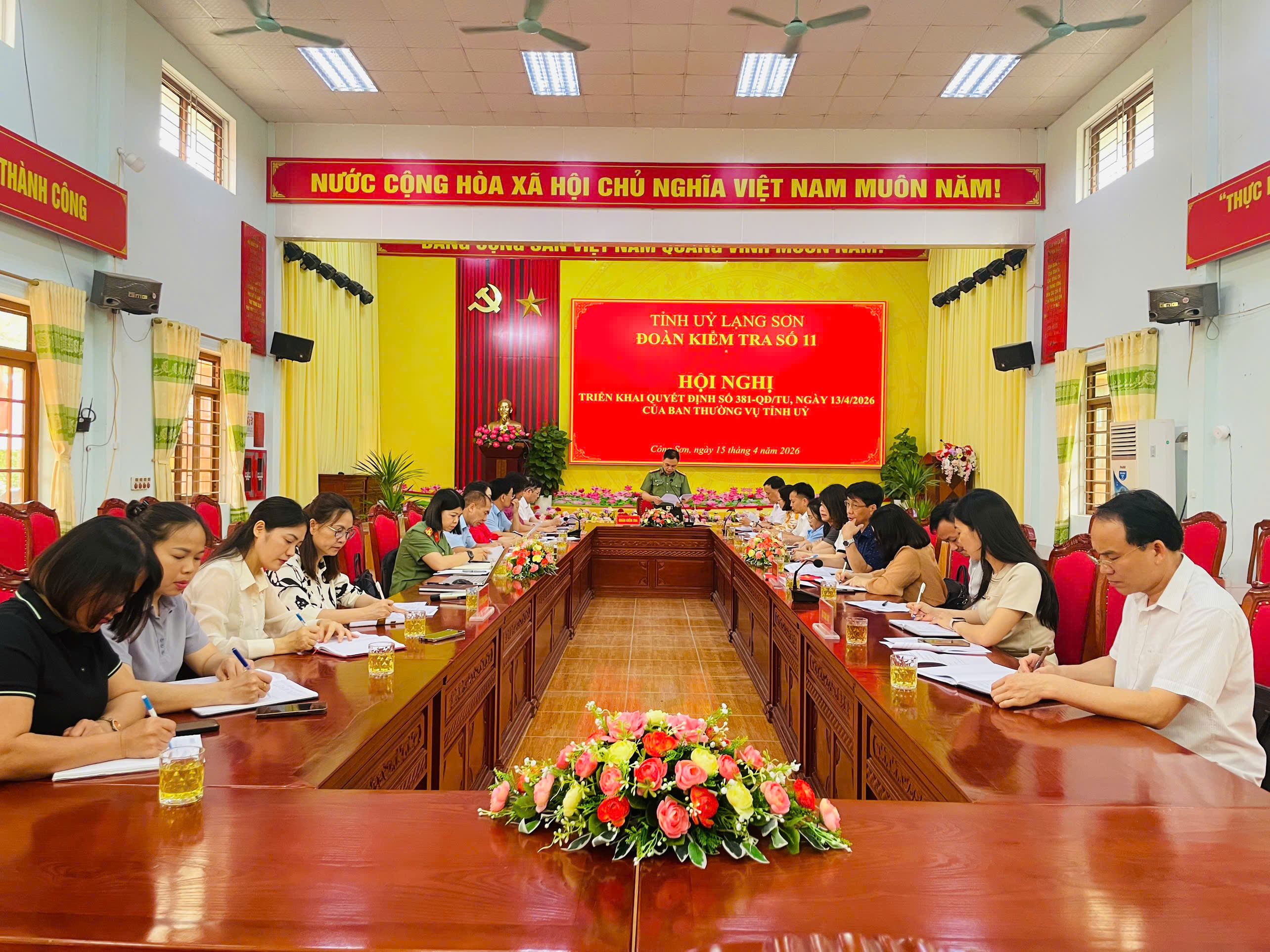 Ngày 15/4, tại xã Công Sơn, Đoàn kiểm tra số 11 của Ban Thường vụ Tỉnh ủy đã tổ chức hội nghị triển khai Quyết định số 381-QĐ/TU ngày 13/4/2026 đối với Ban Thường vụ Đảng ủy 4 xã: Đồng Đăng, Cao Lộc, Công Sơn và Ba Sơn. Đoàn kiểm tra do đồng chí Hà Quảng Thành, Phó Chủ nhiệm Thường trực Ủy ban Kiểm tra Đảng ủy Công an tỉnh, Thủ trưởng Cơ quan Ủy ban Kiểm tra Đảng ủy Công an tỉnh làm Trưởng đoàn. Tham gia đoàn còn có các thành viên theo quyết định của Ban Thường vụ Tỉnh ủy.