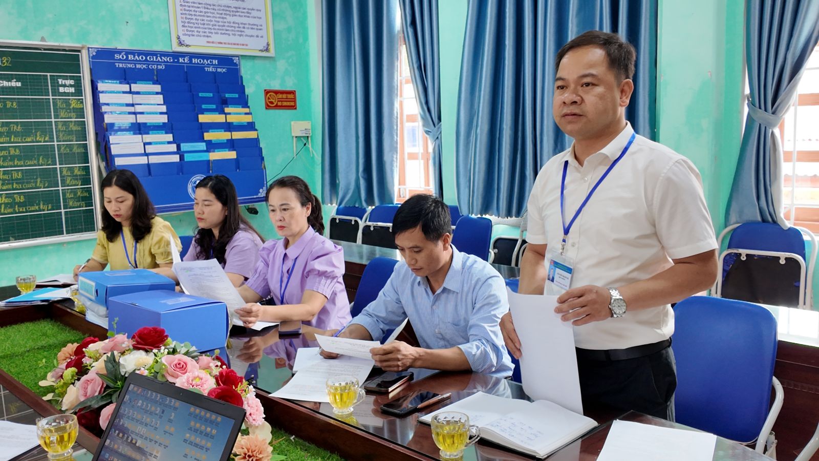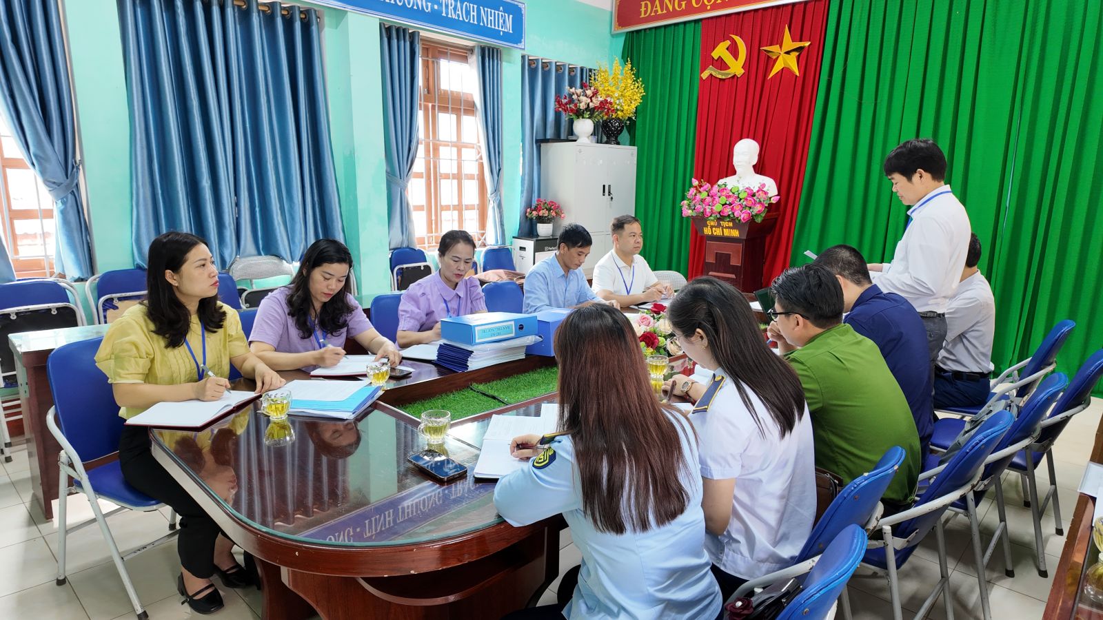 Đoàn kiểm tra liên ngành tỉnh Lạng Sơn làm việc với Ban Giám hiệu Trường PTDTBT TH&THCS Công Sơn về công tác bảo đảm an toàn thực phẩm.