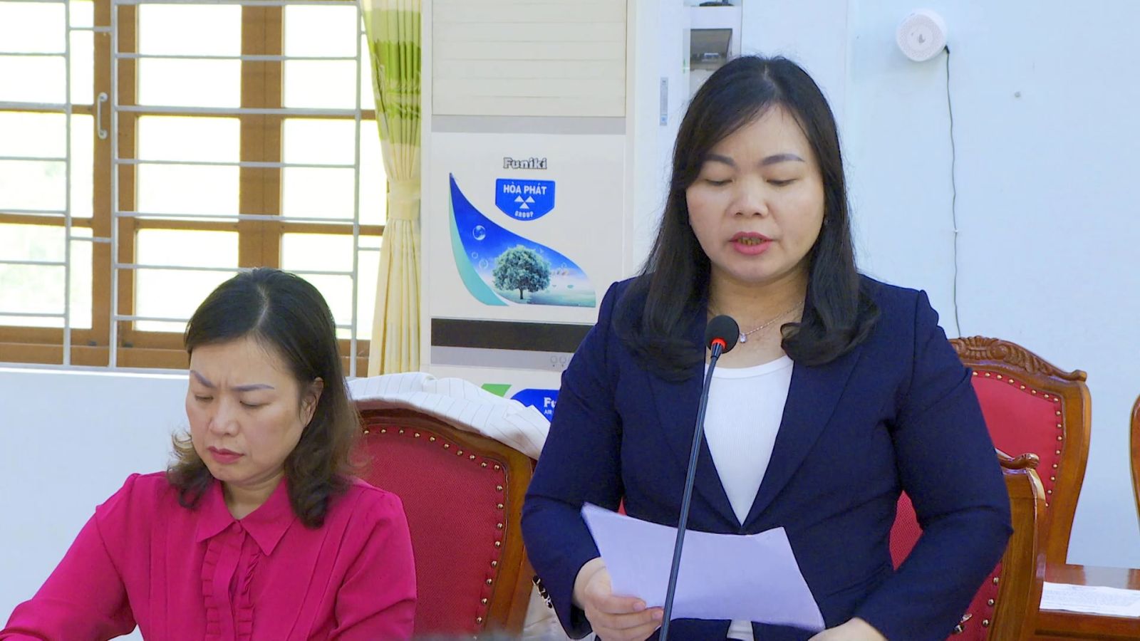 Đồng chí Hà Thị Liên - Trưởng ban Xây dựng Đảng đọc Tờ trình của Ban Thường vụ Đảng uỷ