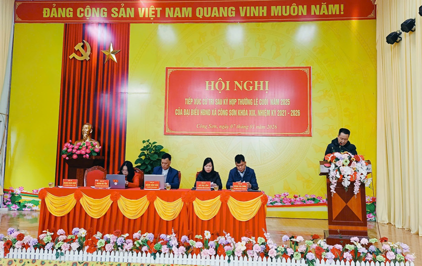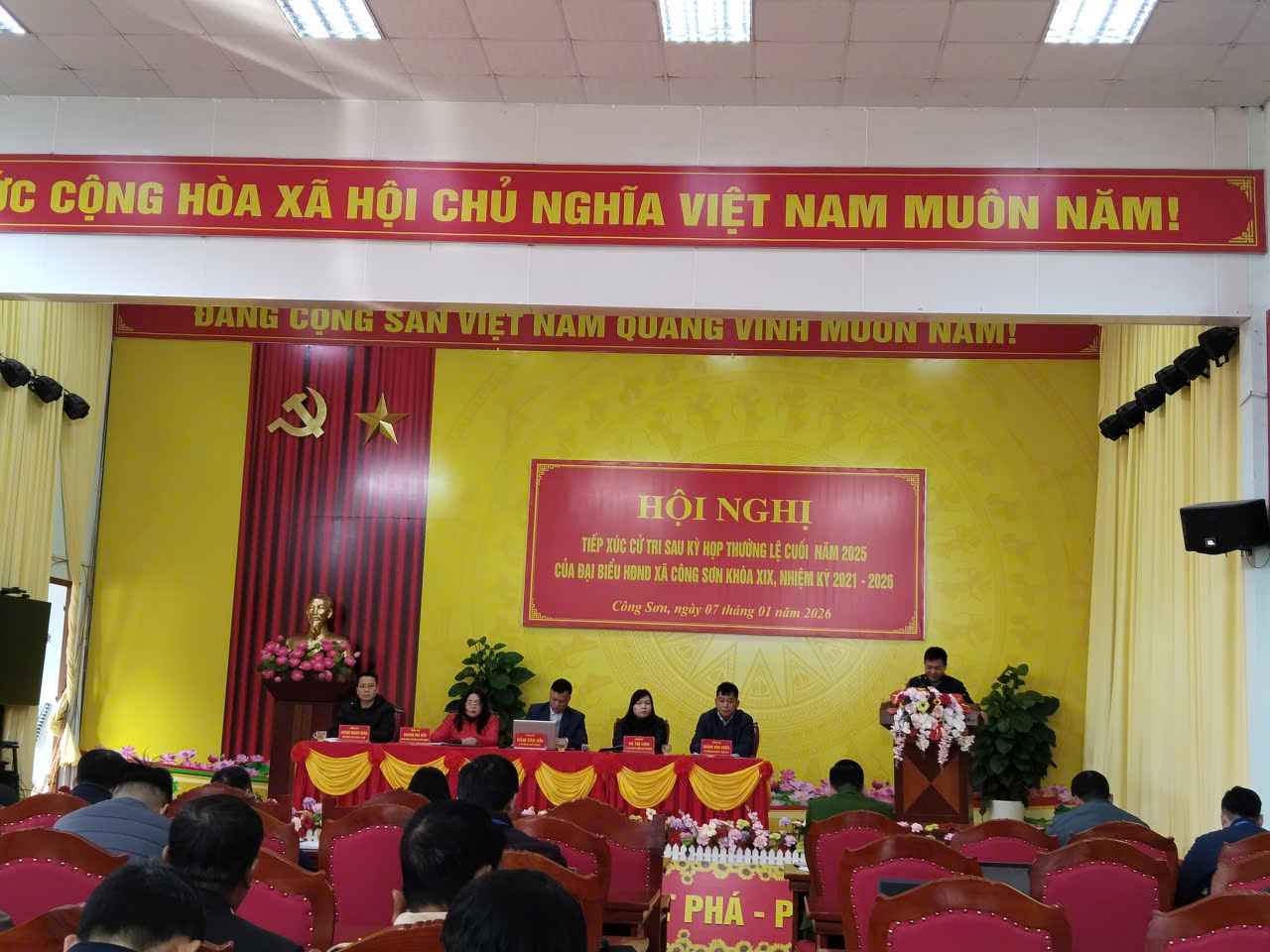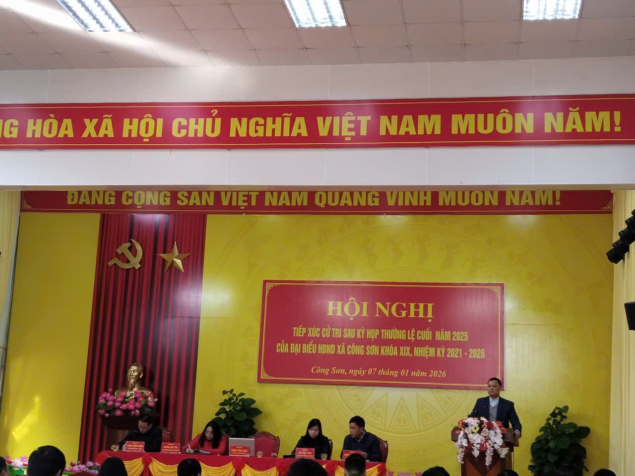 Ngày 07/01/2026, tại Hội trường UBND xã Công Sơn, UBMTTQ Việt Nam xã Công Sơn đã tổ chức Hội nghị tiếp xúc cử tri sau Kỳ họp thường lệ cuối năm 2025. Tham dự hội nghị có các đồng chí lãnh đạo Đảng ủy, HĐND, UBND, UBMTTQ Việt Nam xã; đại biểu HĐND xã nhiệm kỳ 2021-2026, đại diện các cơ quan, đơn vị trên địa bàn cùng đông đảo cử tri các thôn.
