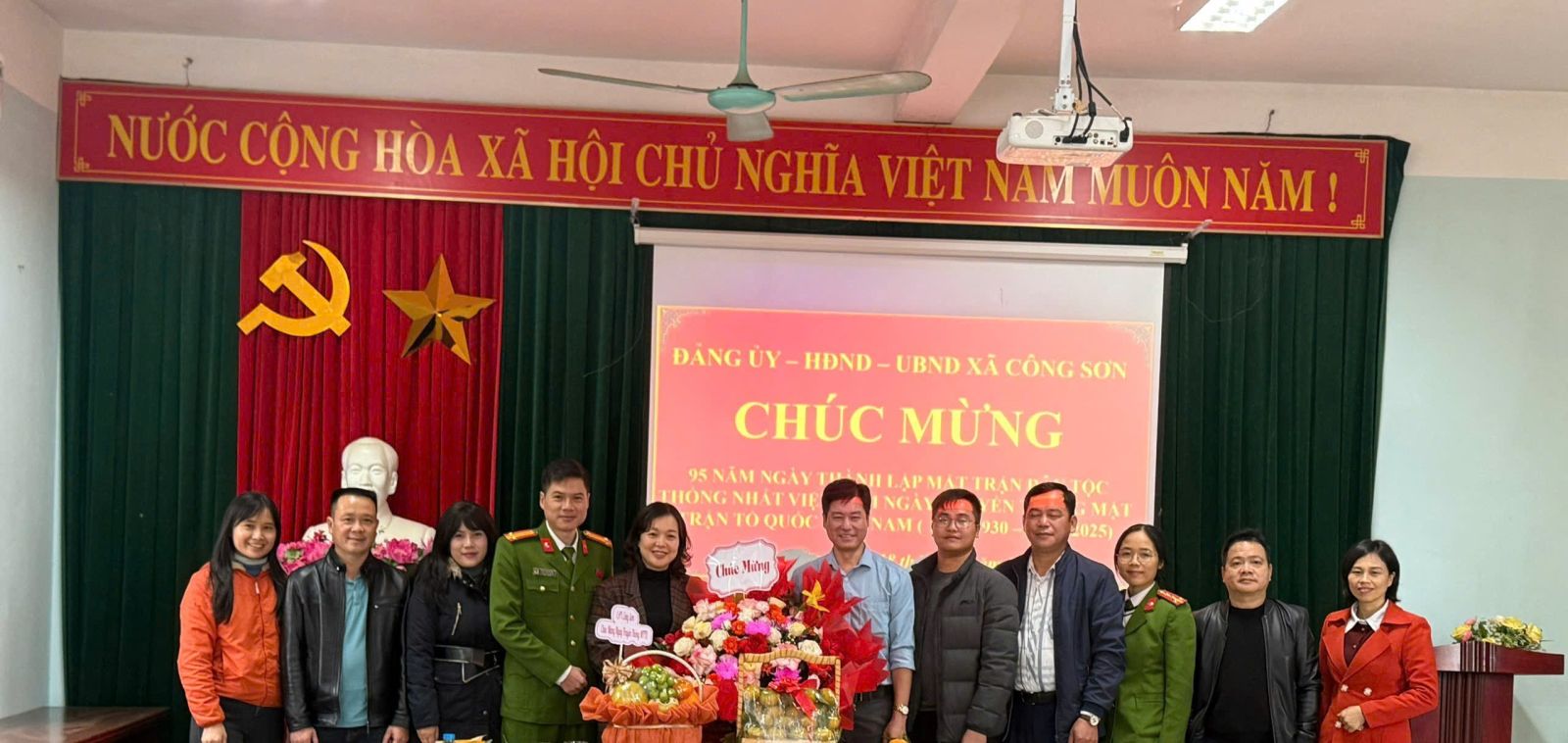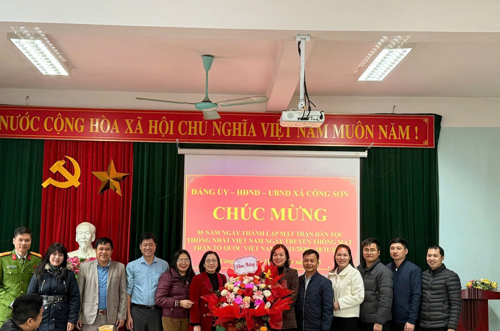Nhân kỷ niệm 95 năm Ngày thành lập Mặt trận dân tộc thống nhất Việt Nam, Ngày truyền thống Mặt trận Tổ quốc Việt Nam (18/11/1930 - 18/11/2025), sáng nay, ngày 18/11/2025, Đoàn công tác của Thường trực Đảng ủy, HĐND, UBND xã Công Sơn do đồng chí Nguyễn Thị Quyên, Phó Bí thư Thường trực Đảng ủy xã làm Trưởng đoàn đã đến chúc mừng Ủy ban MTTQ Việt Nam xã.