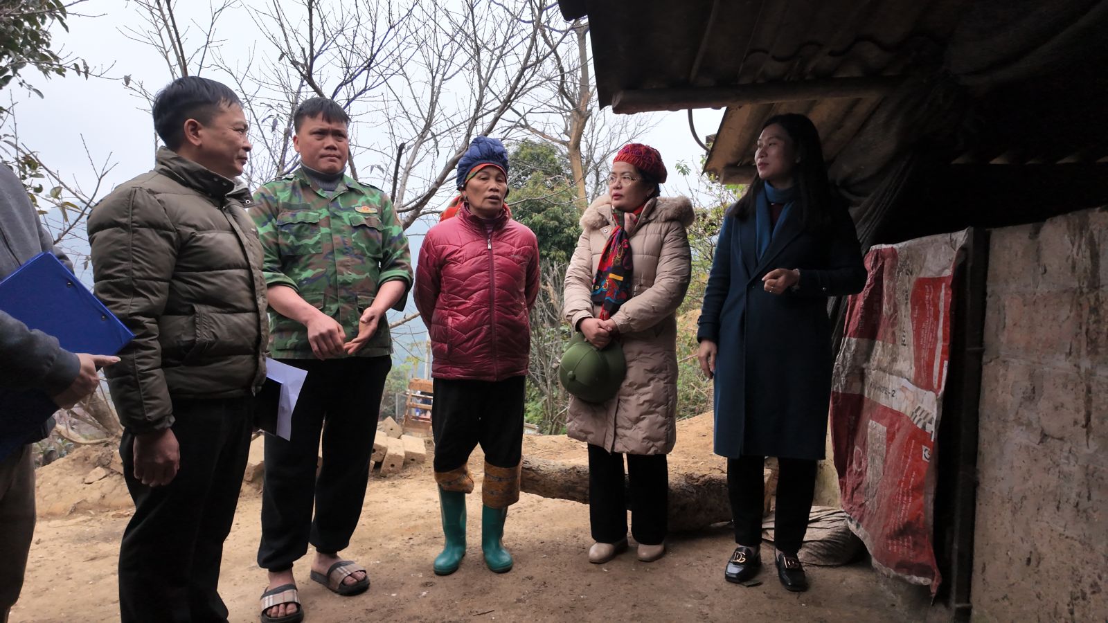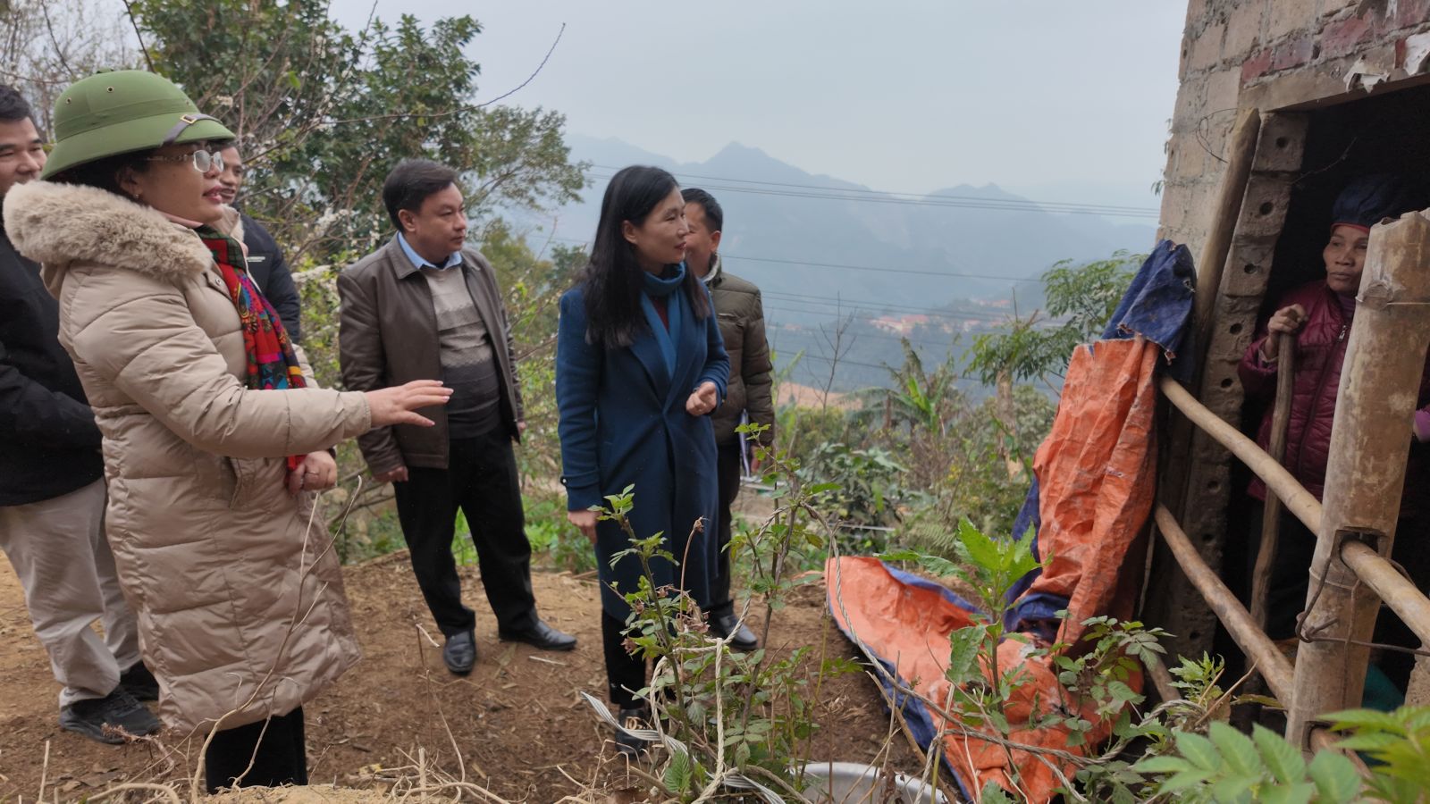 Đồng chí Trần Thanh Nhàn, Phó Chủ tịch UBND tỉnh (áo xanh) cùng Đoàn công tác kiểm tra công tác phòng, chống rét đậm, rét hại tại xã Công Sơn.
