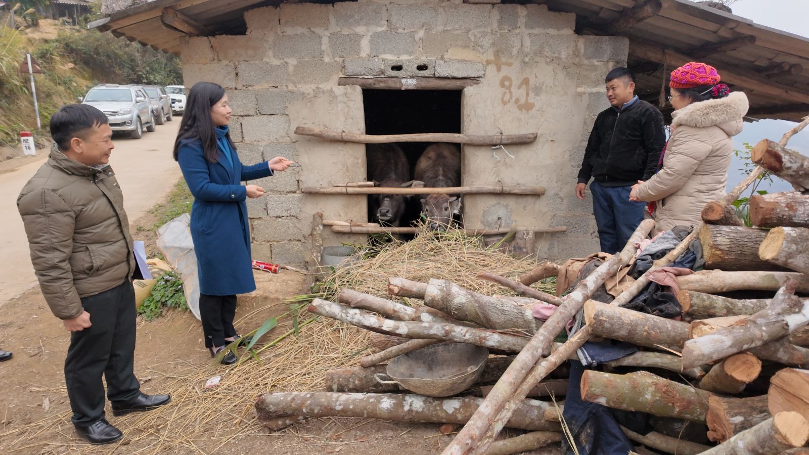 Đoàn công tác kiểm tra công tác phòng, chống rét cho gia súc tại một hộ chăn nuôi trên địa bàn xã Công Sơn.