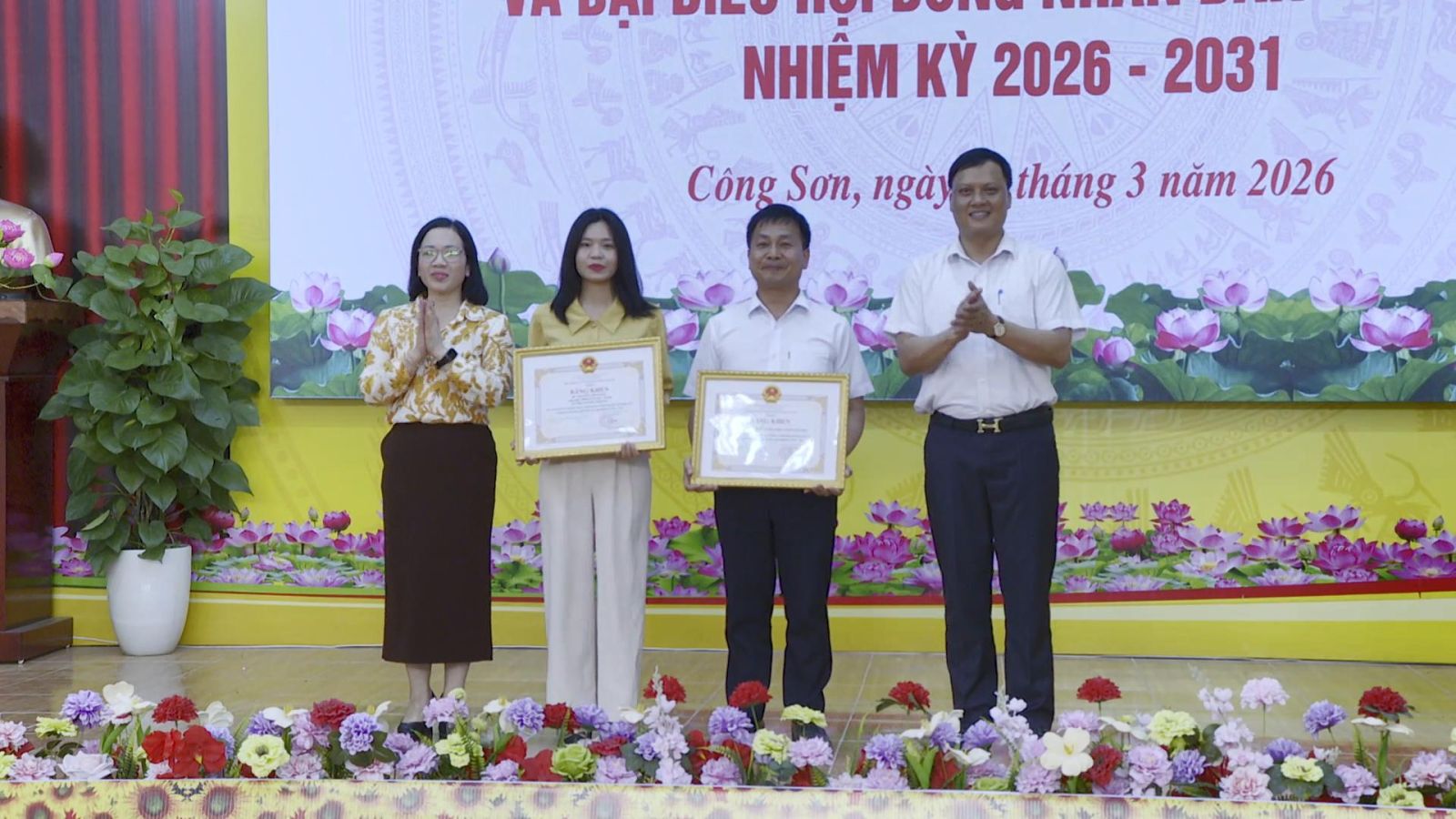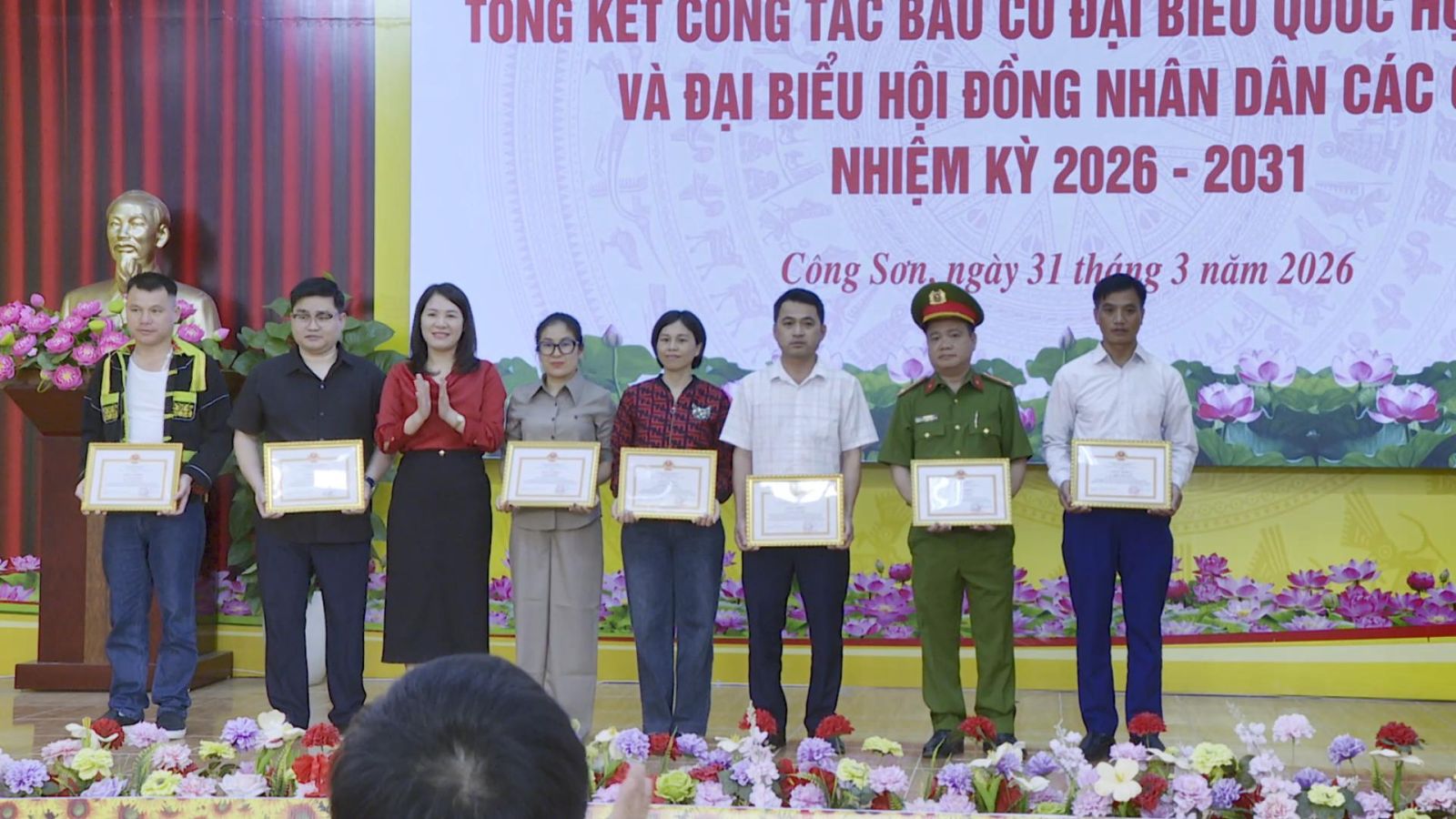 Nhân dịp này, UBND xã Công Sơn và một cá nhân vinh dự được Chủ tịch UBND tỉnh tặng Bằng khen; 19 tập thể và 7 cá nhân được UBND xã Công Sơn tặng Giấy khen vì đã có thành tích xuất sắc trong công tác bầu cử đại biểu Quốc hội khóa XVI và đại biểu HĐND các cấp nhiệm kỳ 2026–2031./.