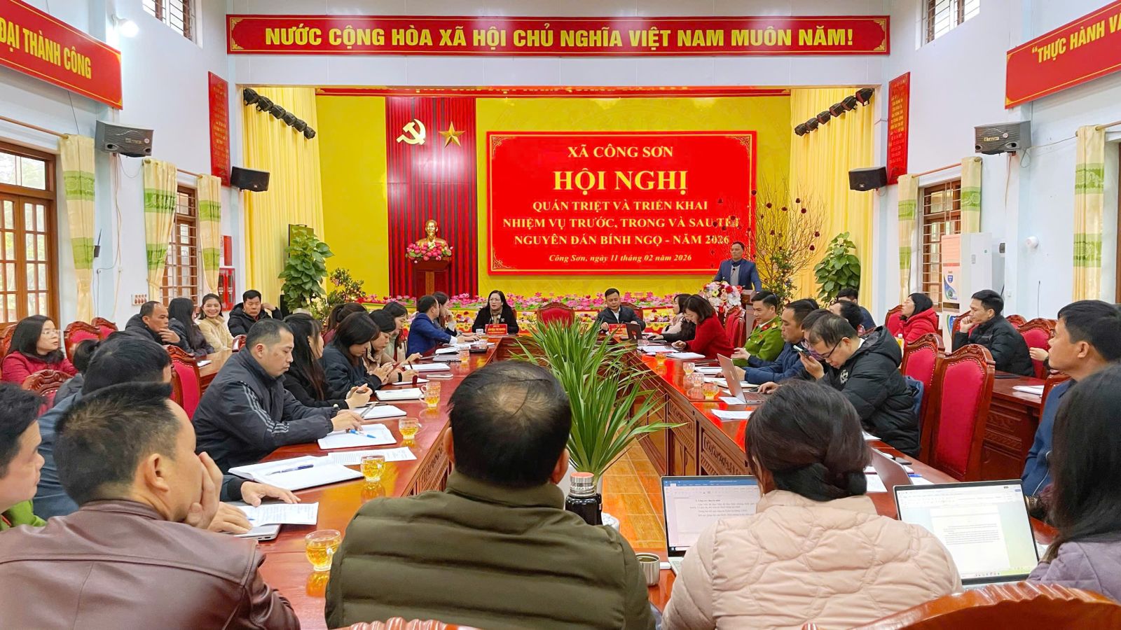 Chiều 11/2/2026, UBND xã Công Sơn tổ chức Hội nghị triển khai nhiệm vụ năm 2026. Dự hội nghị có các đồng chí Thường trực Đảng ủy, lãnh đạo HĐND, UBND xã, Ủy ban MTTQ Việt Nam xã, đại diện các ban, ngành, đoàn thể cùng toàn thể cán bộ, công chức, viên chức xã và Bí thư chi bộ, Trưởng thôn trên địa bàn.