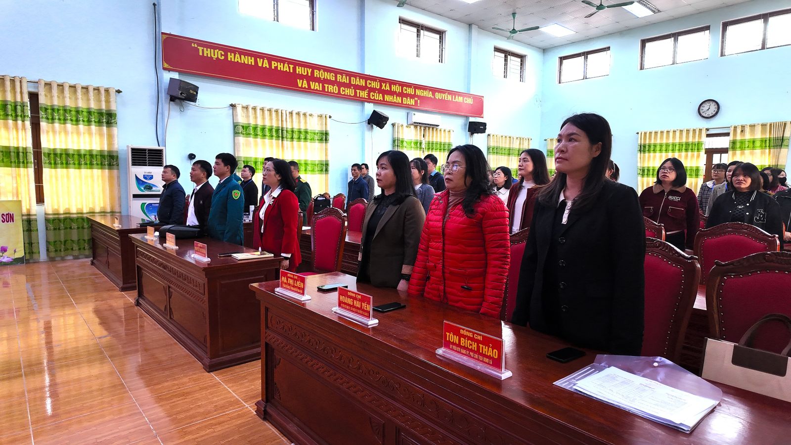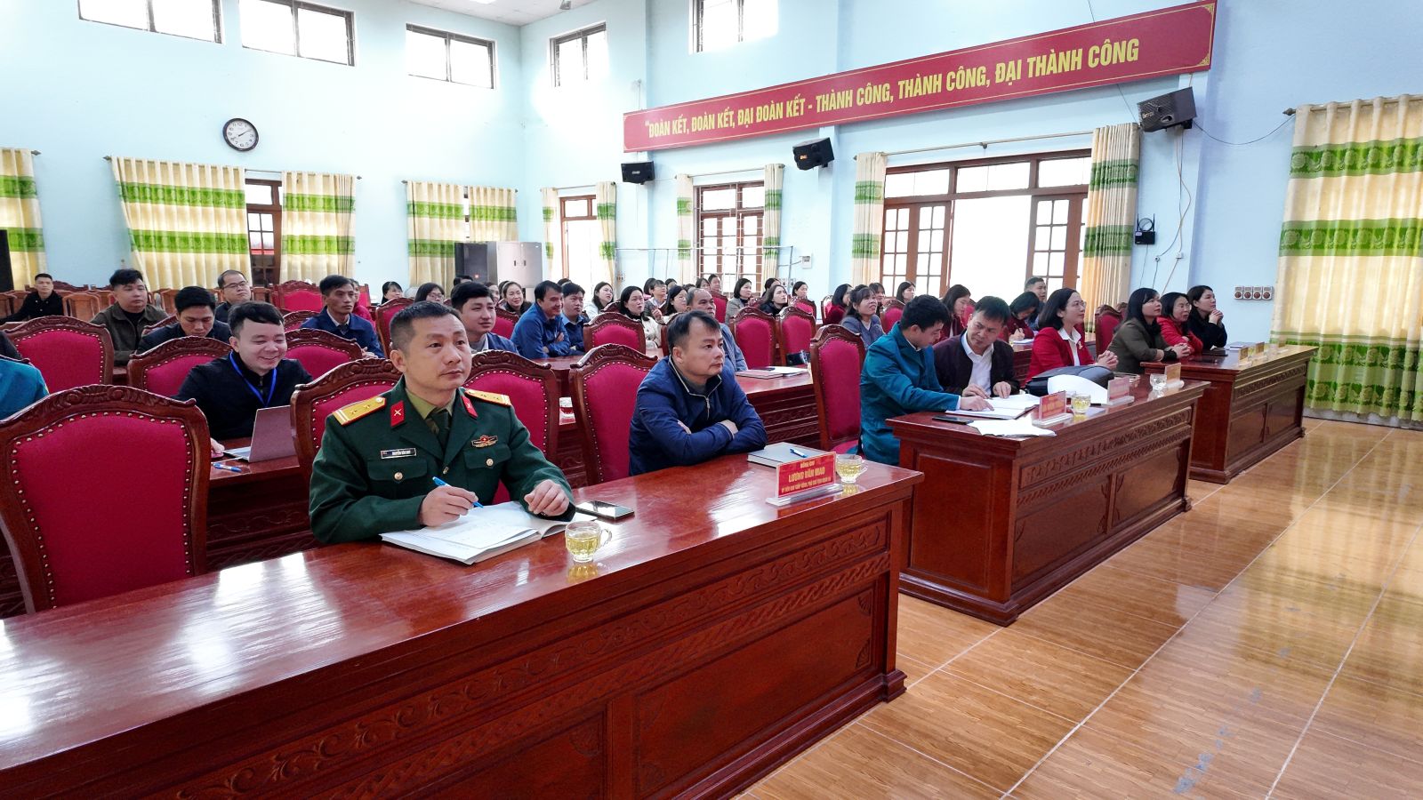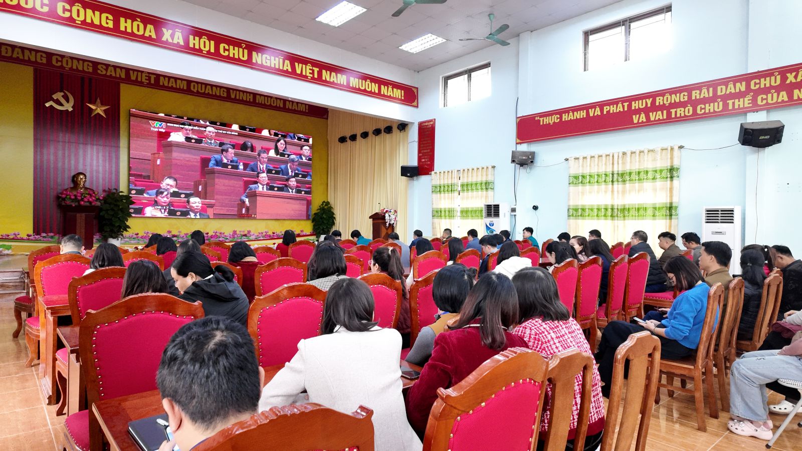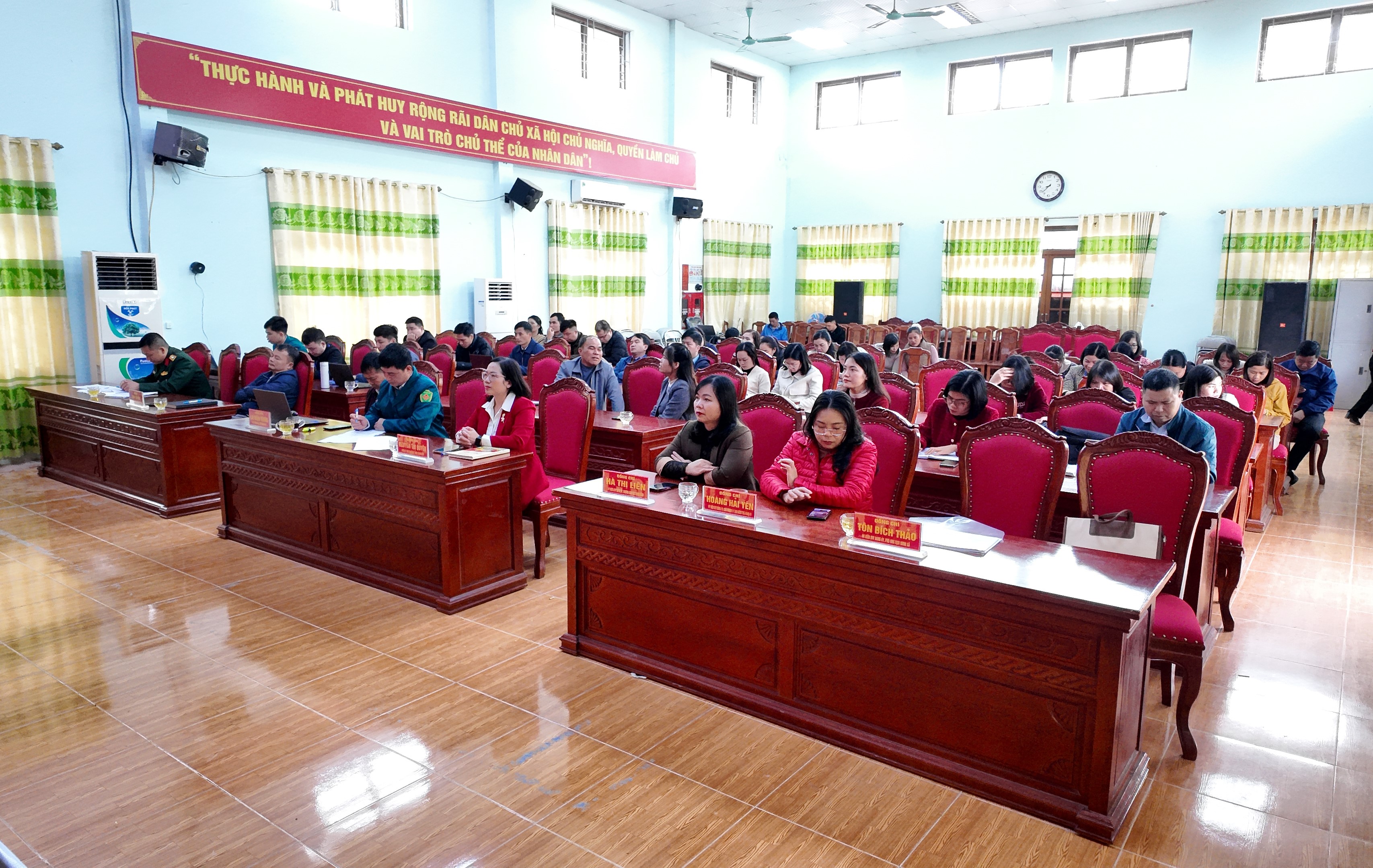 Việc tổ chức điểm cầu trực tuyến tại Nhà văn hóa xã được thực hiện nghiêm túc, trang trọng, bảo đảm đầy đủ các điều kiện kỹ thuật theo hướng dẫn của cấp trên. Cán bộ, công chức xã Công Sơn tham dự với tinh thần nghiêm túc, tập trung theo dõi toàn bộ chương trình khai mạc, thể hiện sự quan tâm sâu sắc đối với Đại hội.